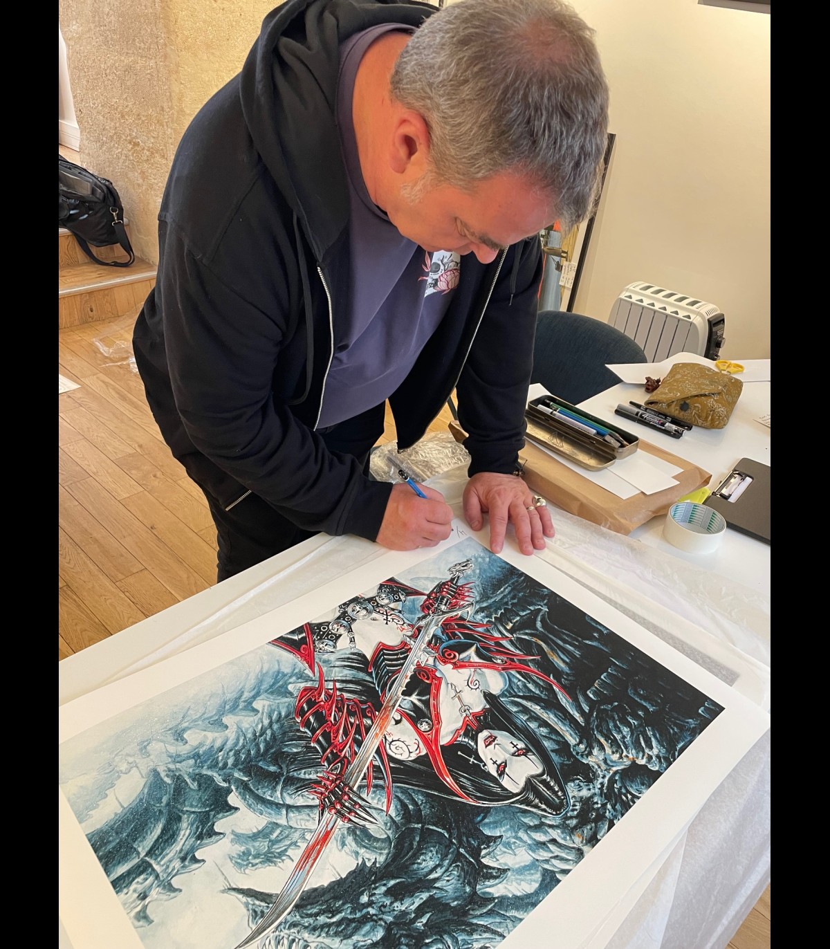 de deux estampes; une au format 30x30cm et l'autre au format 50x70cm numérotées et signées par Olivier Ledroit.