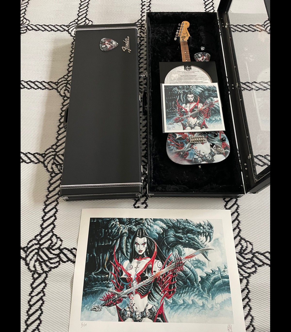 Illustration : Le dessin Claudia Demona paraît dans le tome 2 de Requiem, Chevalier Vampire. Elle est cruelle sadique à un niveau plus avancé que les autres vampires. Le dessin s'intègre parfaitement dans la forme de la Stratocaster et lui donne l'image démoniaque, gothique et magnifique de la bande dessinée.