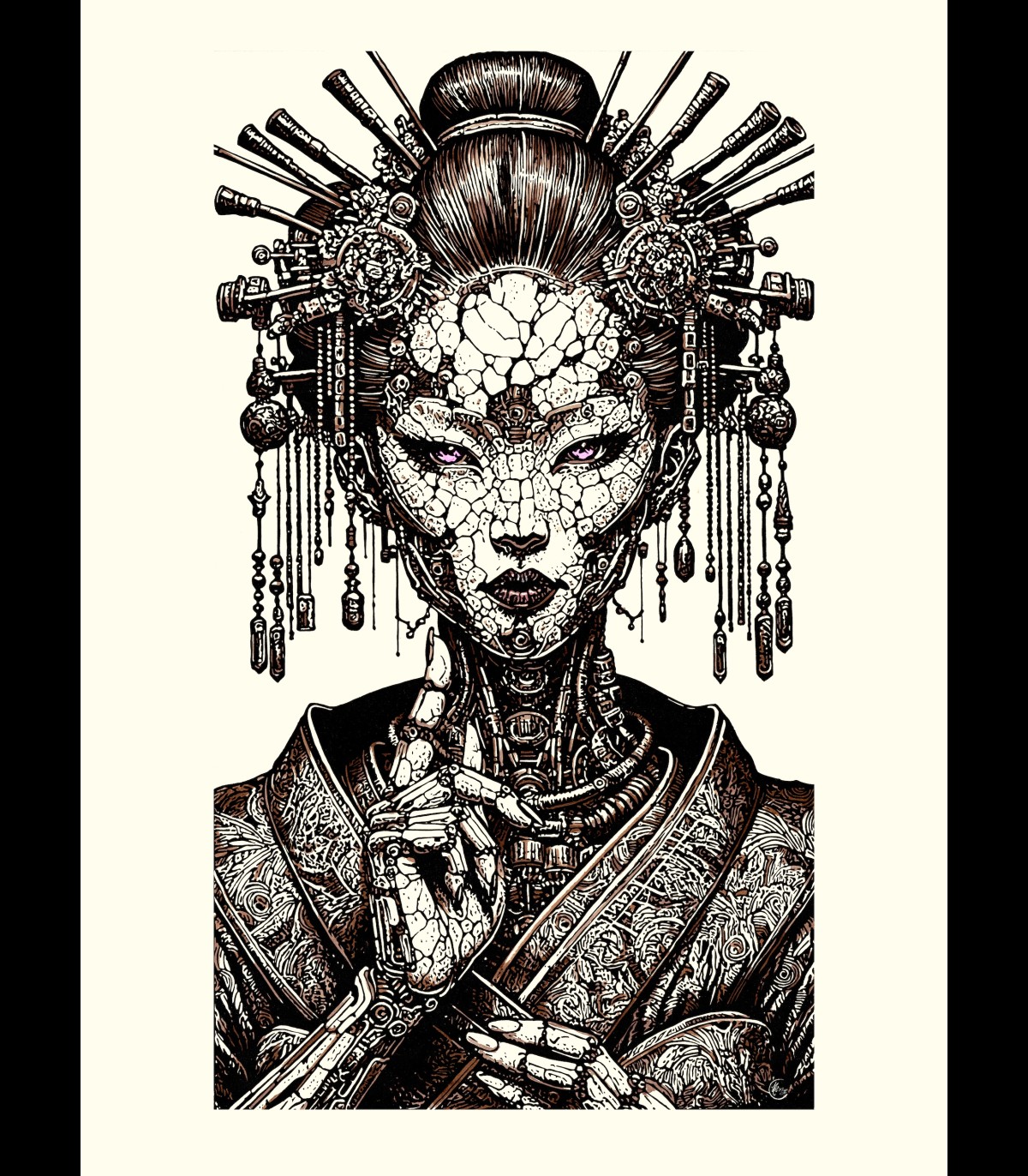 Le rendu ultra mat est le résultat d'une impression effet velours, cette illustration à été réalisée sur Papier Arches 300g coton à l'encre de chine, lavi et rotring isograph.