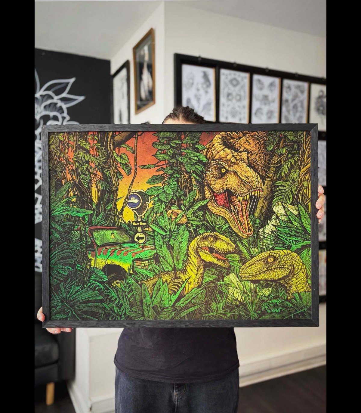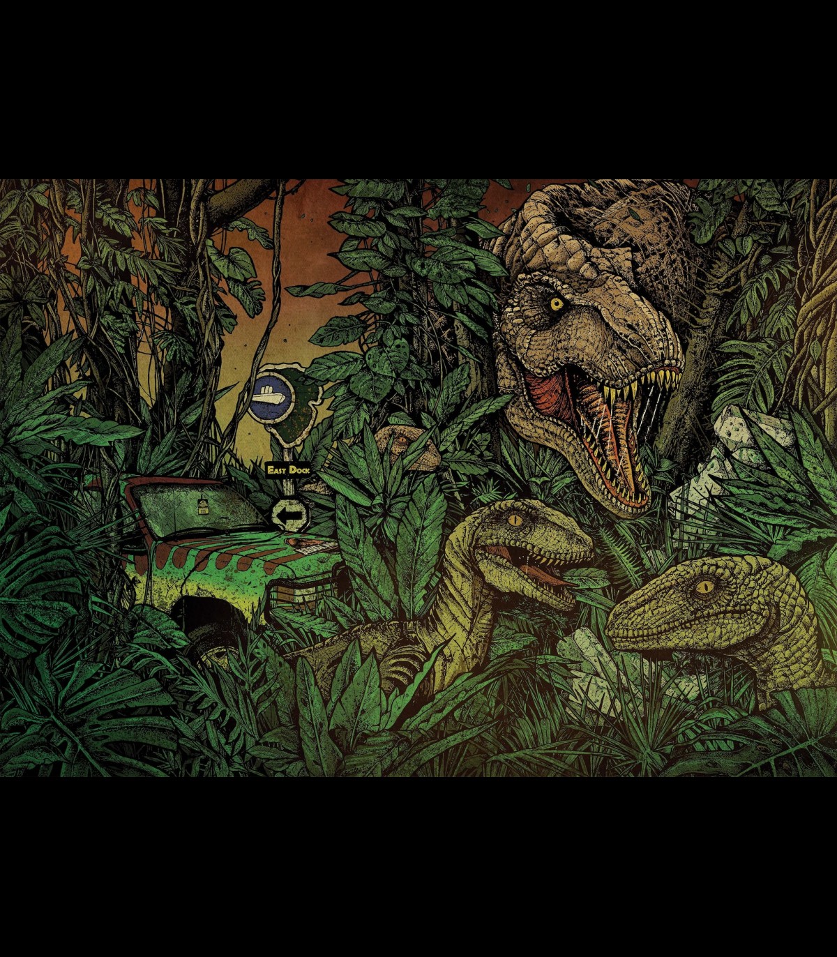 Réalisé à partir d'une illustration originale de SINPIGGYHEAD, librement inspirée de l'univers "Jurassic Park"